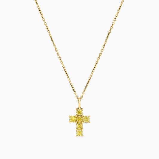 Natural Yellow Radiant and White Diamond 1.16 Carat TW Gold Drop Pendant