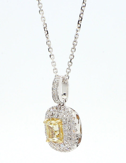 Natural Yellow Cushion Diamond 1.02 Carat TW Gold Drop Pendant