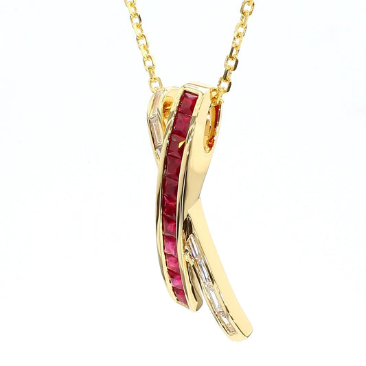 Natural Red Princess Ruby and White Diamond 1.00 Carat TW Gold Drop Pendant