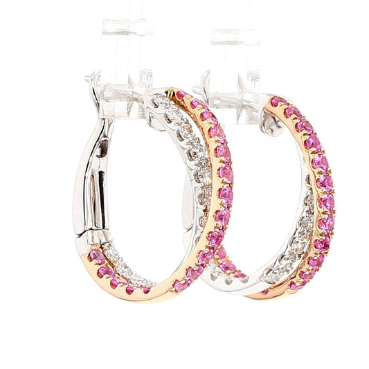 Natural Pink Round Sapphire and Diamond 1.93 Carat TW Gold Hoop Earrings