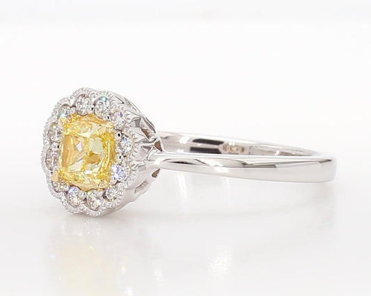 Natural Yellow Cushion Diamond 0.75 Carat TW Gold Cocktail Ring