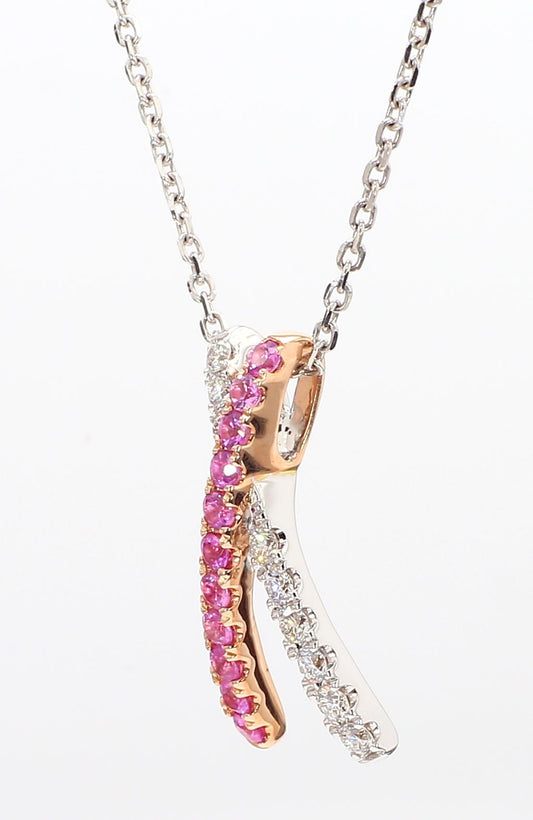 Natural Pink Round Sapphire and White Diamond .65 Carat TW Rose Gold Pendant