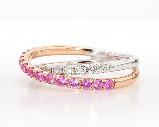 Natural Pink Round Sapphire and White Diamond .82 Carat TW Gold Wedding Band