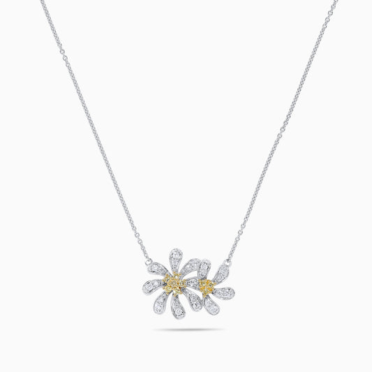 Natural Yellow Round and White Diamond .23 Carat TW Gold Necklace