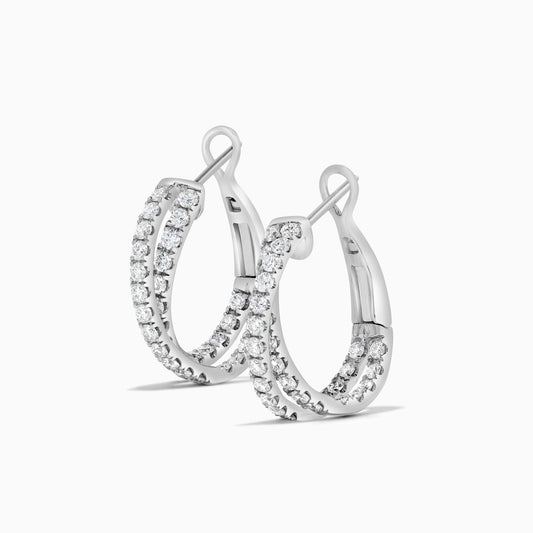 Natural White Round Diamond 1.66 Carat TW Rose Gold Hoop Earrings