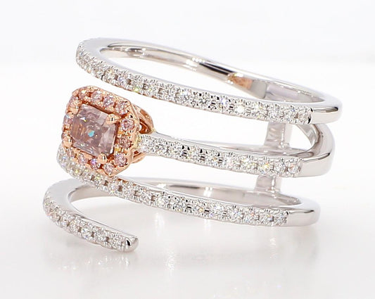 GIA Certified Natural Pink Radiant Diamond .70 Carat TW Gold Cocktail Ring