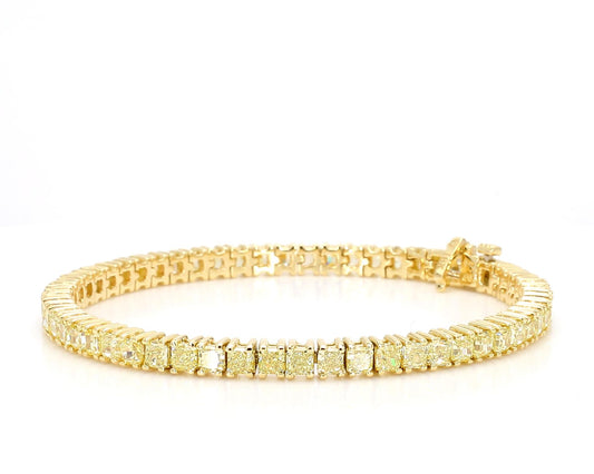 Natural Yellow Radiant Cut Diamond 8.15 Carat TW Gold Tennis Bracelet