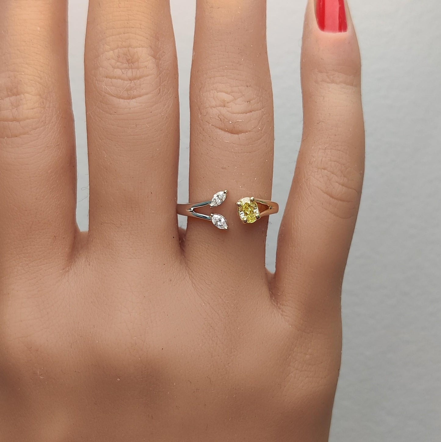 Natural Yellow Oval and White Diamond 0.44 Carat TW Gold Cocktail Ring