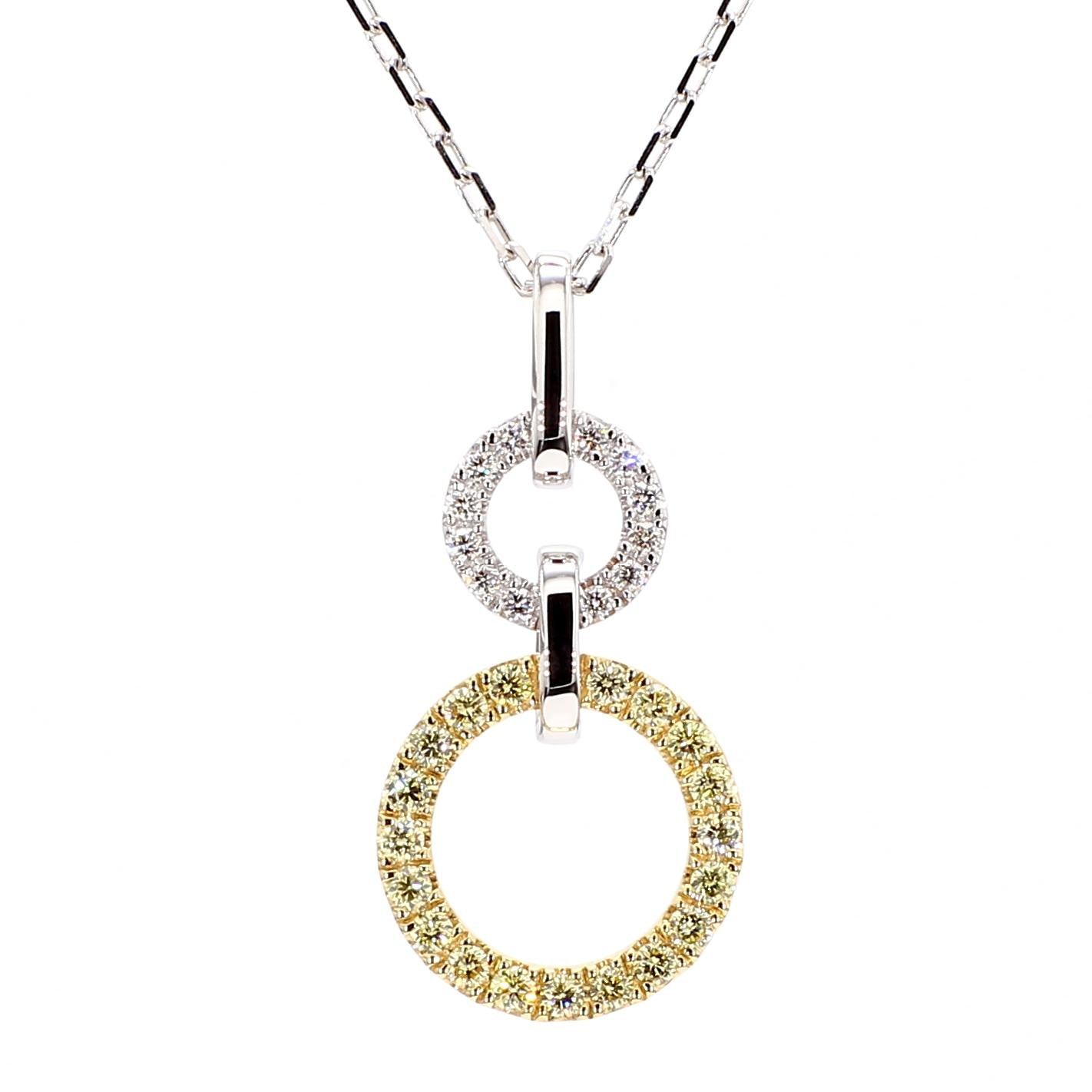 Natural Yellow Round and White Diamond .33 Carat TW Gold Drop Pendant