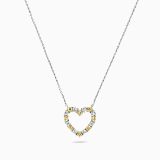 Natural Yellow Round Diamond .63 Carat TW Gold Heart Necklace